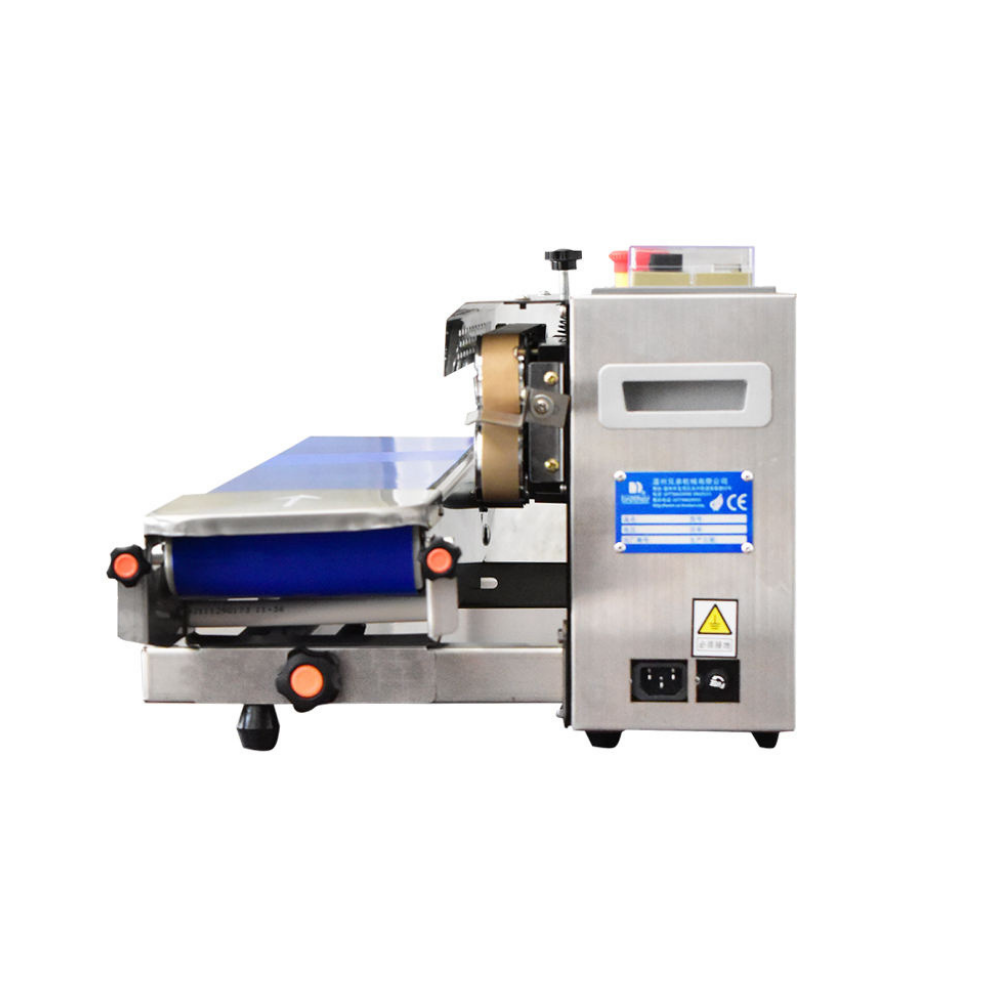The Bropac FR-750W/S is a heavy-duty continuous band sealer featuring a fully stainless steel body and convertible vertical/horizontal sealing modes. Powered by an 80W motor and 700W heating system with adjustable temperatures up to 300°C, it delivers fast, strong seals at speeds up to 18 m/min on PE, PP, laminated films, and aluminum foil bags up to 5kg. Equipped with an embossing printer for date codes and batch numbers, it is ideal for food, pharmaceutical, chemical, and agricultural packaging lines requiring durability and versatility.