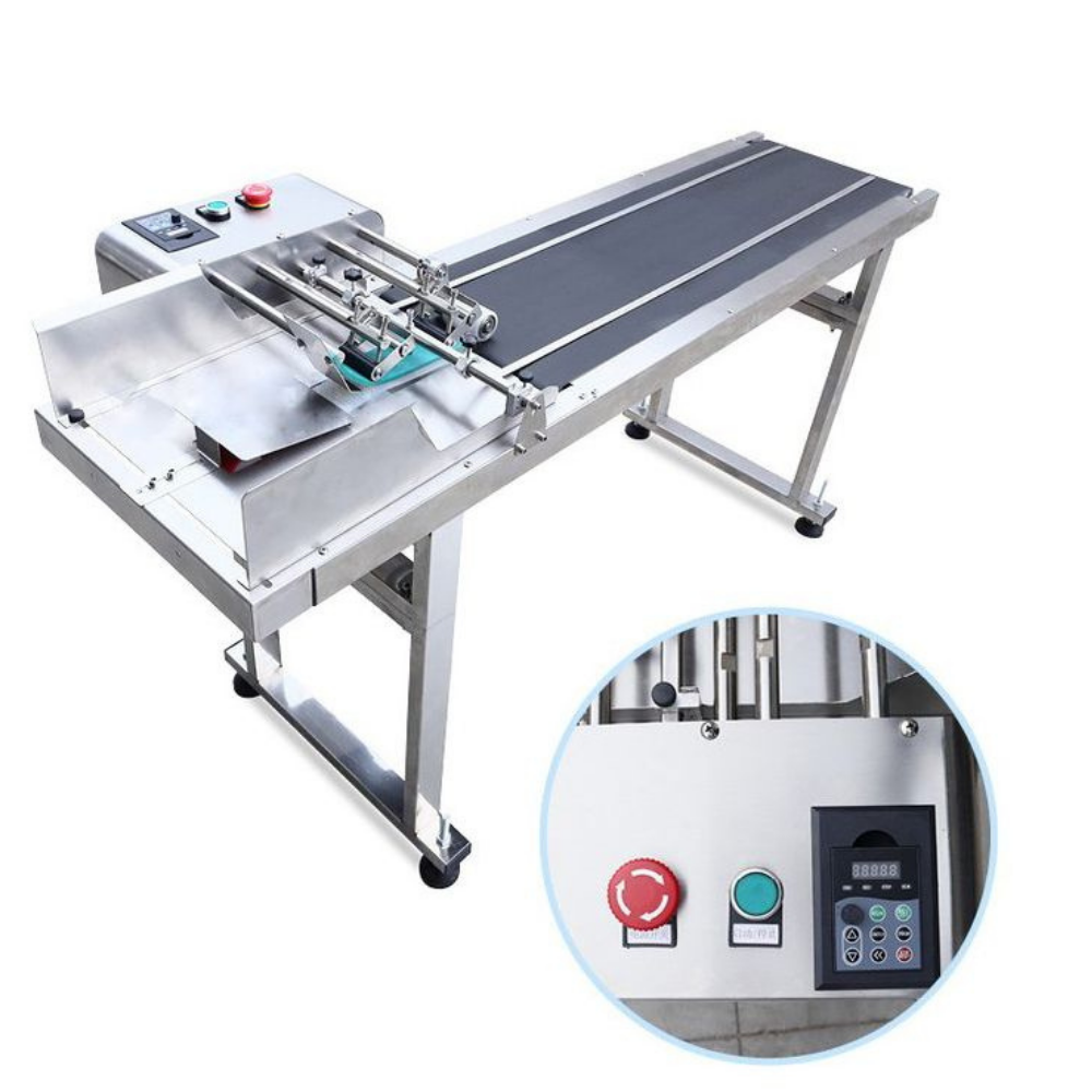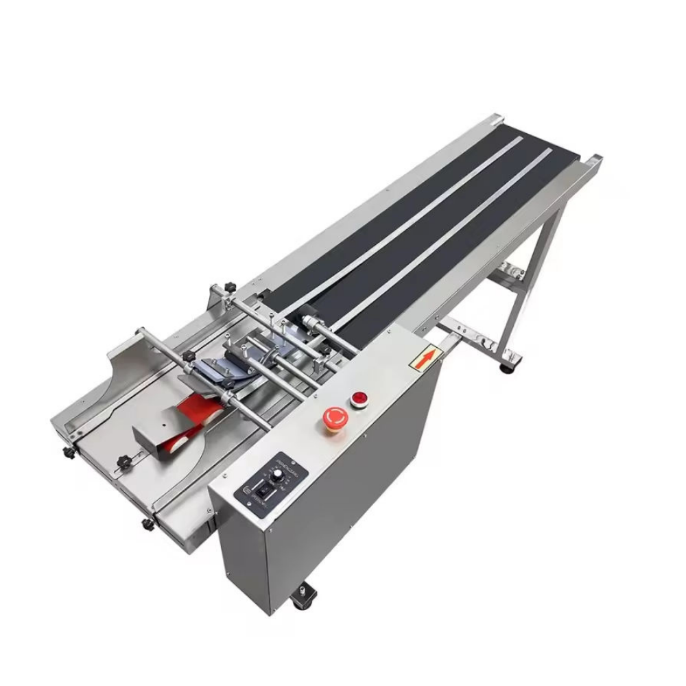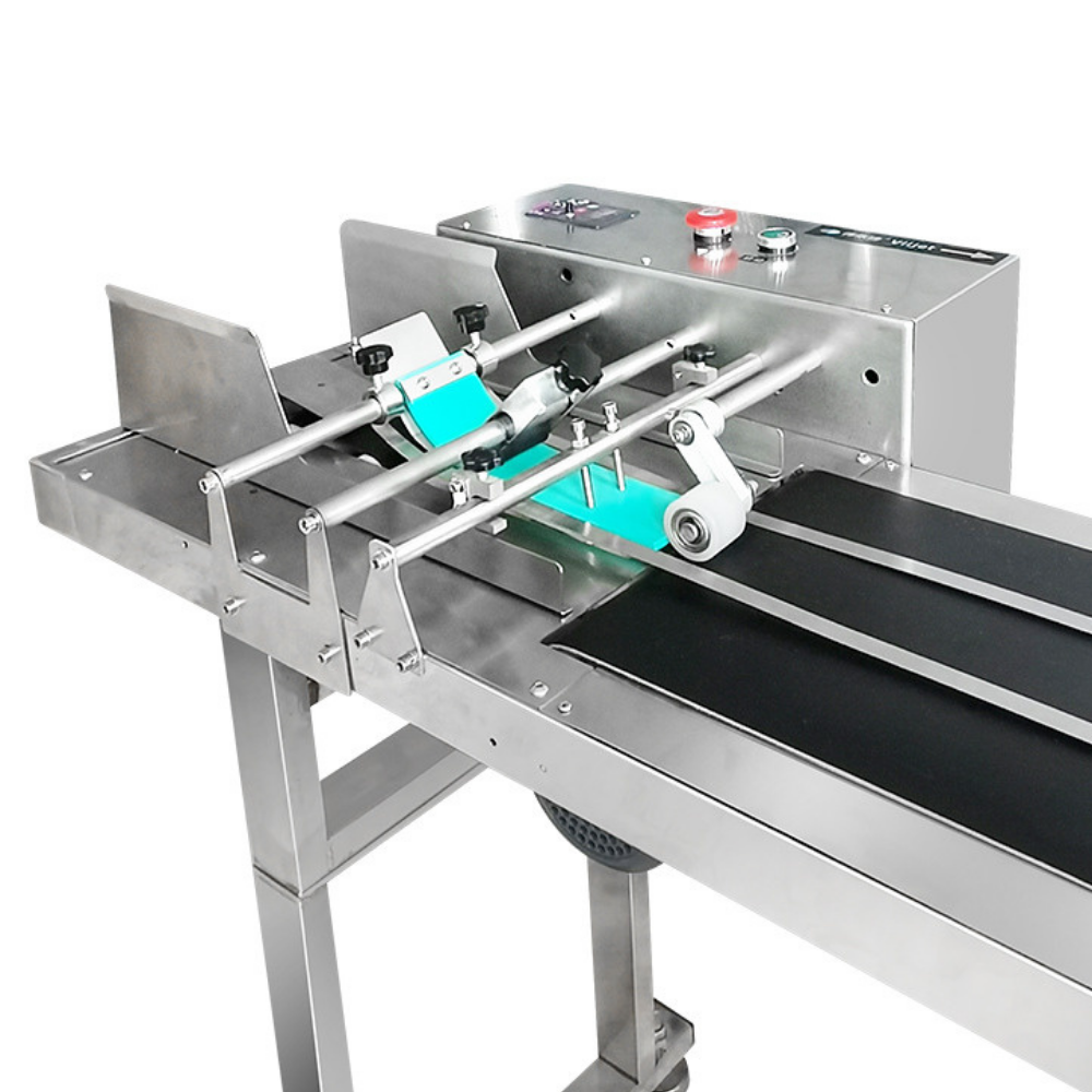 bags, cards, labels, or cartons onto a conveyor belt for easy date coding, barcoding, logo printing,